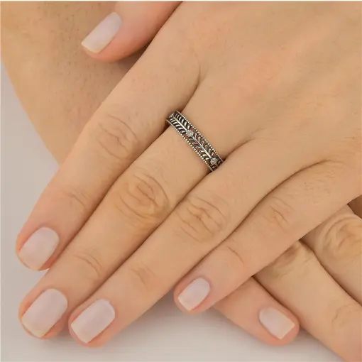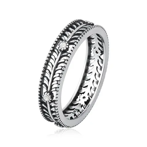 ANEL PRATA 92,5 ENVELHECIDA, COROA COM PEDRAS NO ARO