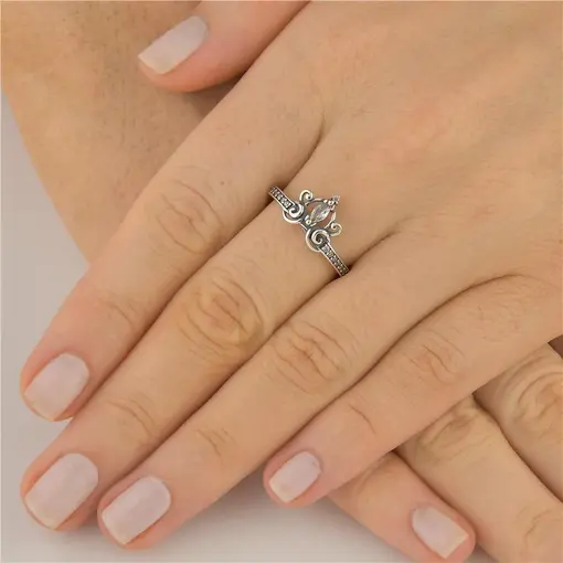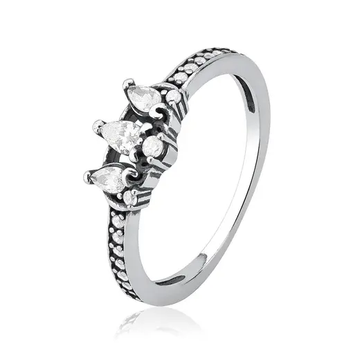 ANEL PRATA 92,5 ENVELHECIDA, COROA COM PEDRAS
