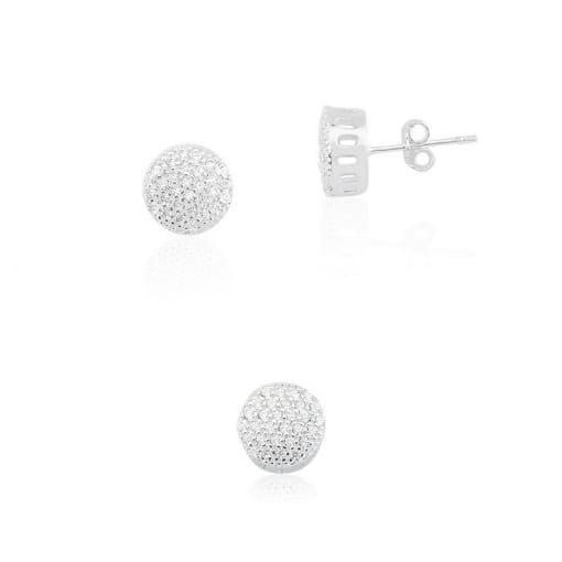 CONJUNTO PRATA 92,5 CIRCULO VAZADO, TODO EM PAVE