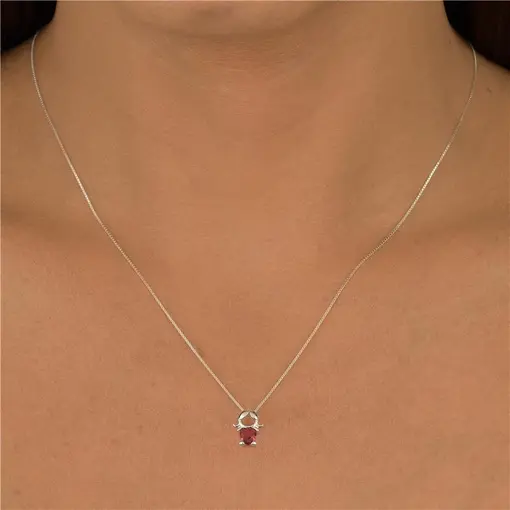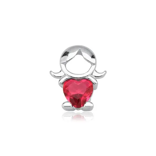 PINGENTE PRATA 92,5 MENINA COM PEDRA CORAÇÃO